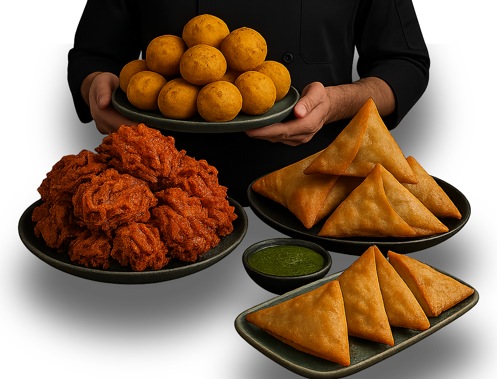 Golden, crispy triangles filled with your choice of spiced vegetables or flavorful minced chicken. A timeless street food favorite, made fresh daily
