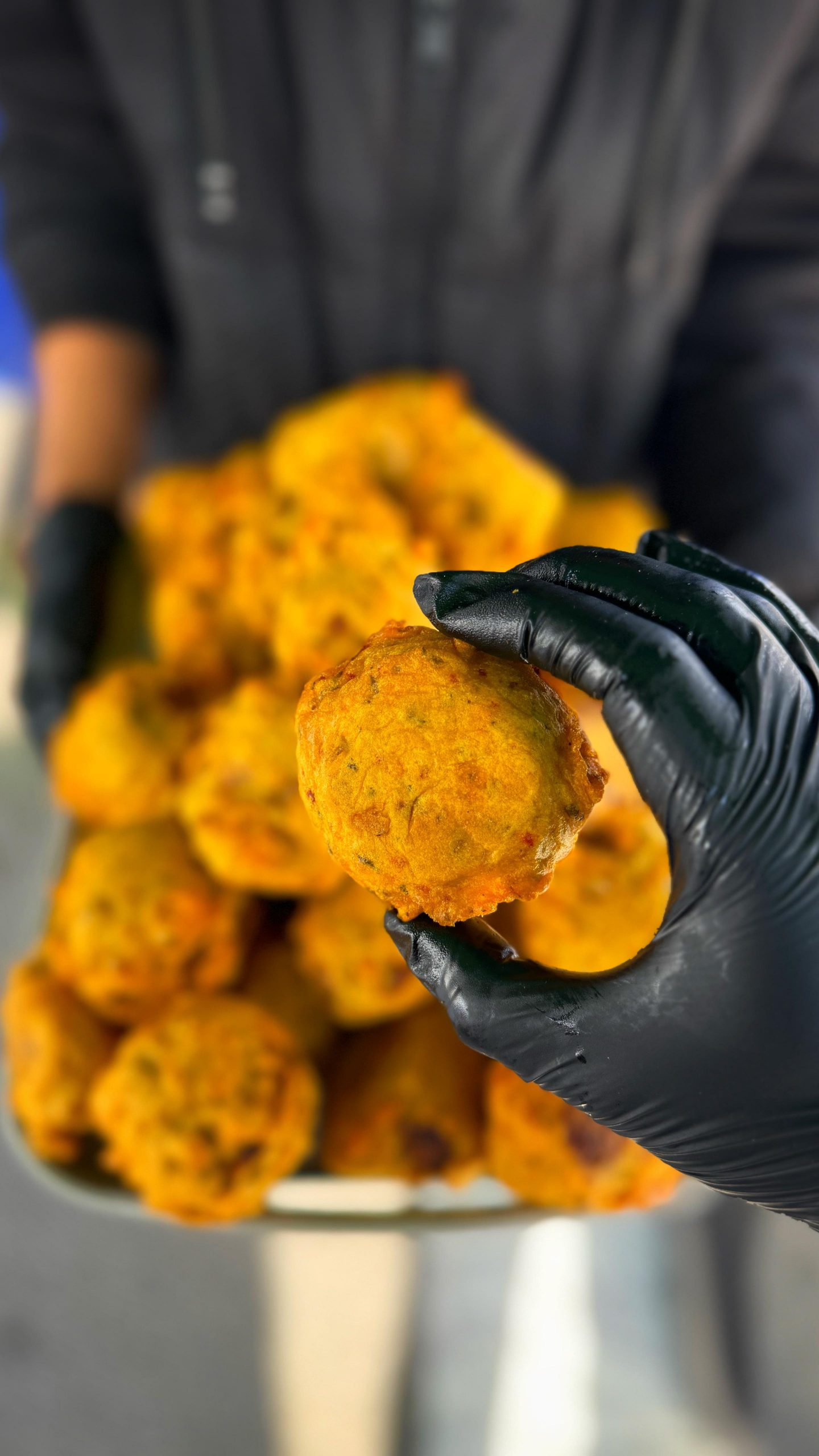 Crisp on the outside, soft on the inside—our spiced potato patties are packed with herbs and served golden-fried. A must-try snack with a bit of kick!
